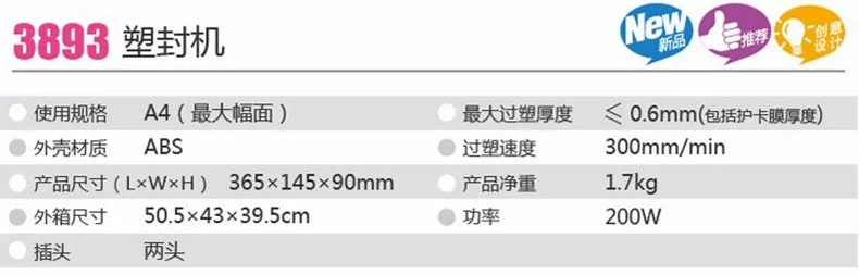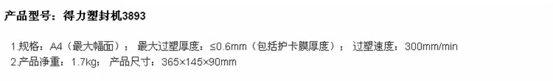 得力3893塑封机 ...