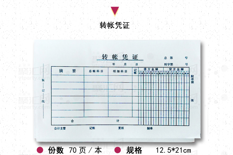 名称:转帐凭证 规格:12.5*21cm 70张/本 所属分类:单据