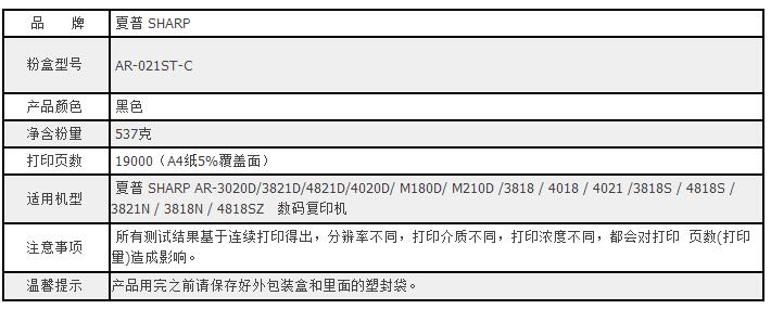 原装夏普SHARP AR-021ST-C粉仓粉盒墨粉碳粉 适用机型:AR-3020D 3812D 4821D 4020D M180D M210D 3818 4018 4021 3818S 4818S 3821N 3818N 4818Z