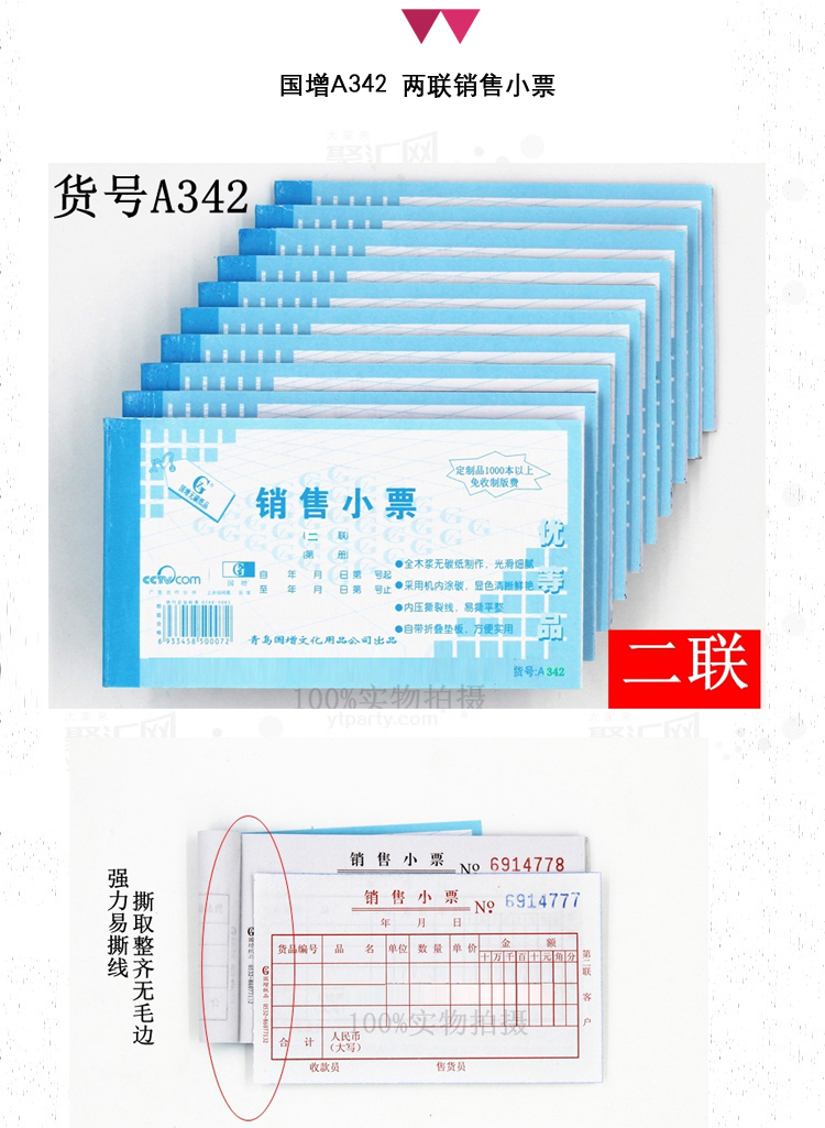 #国增无碳复写二联销售小票A342 80K12.8*7.4cm 二联25组 单本装