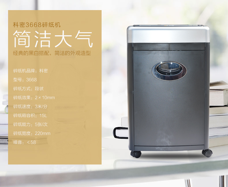 其它特性:入纸过量,自动退纸;碎纸过热,自动停机;蓝光提示,纸满停机