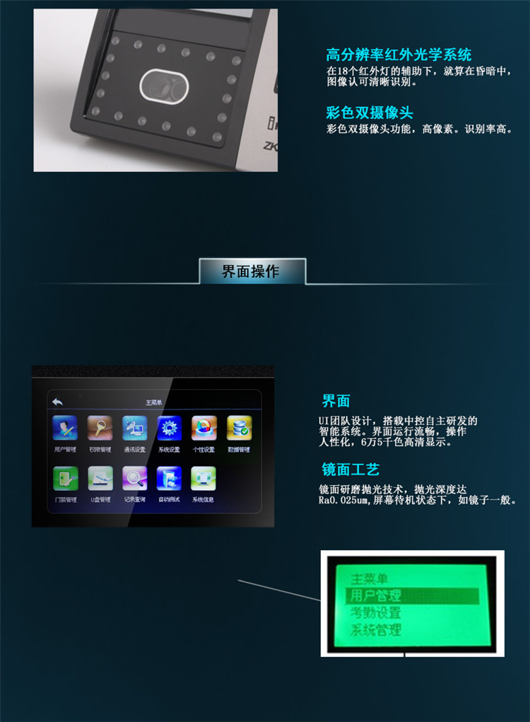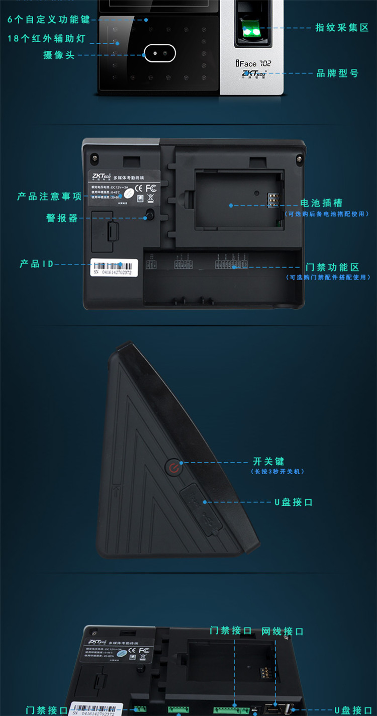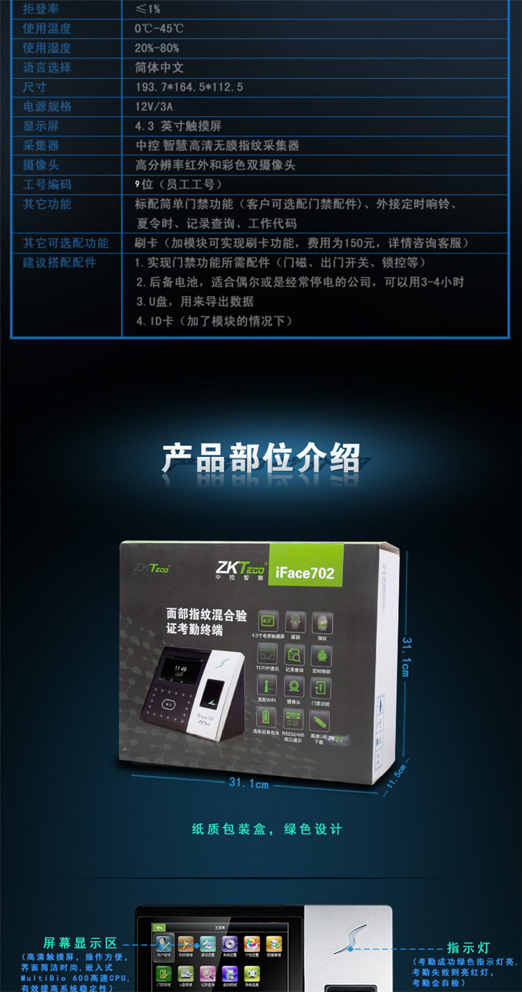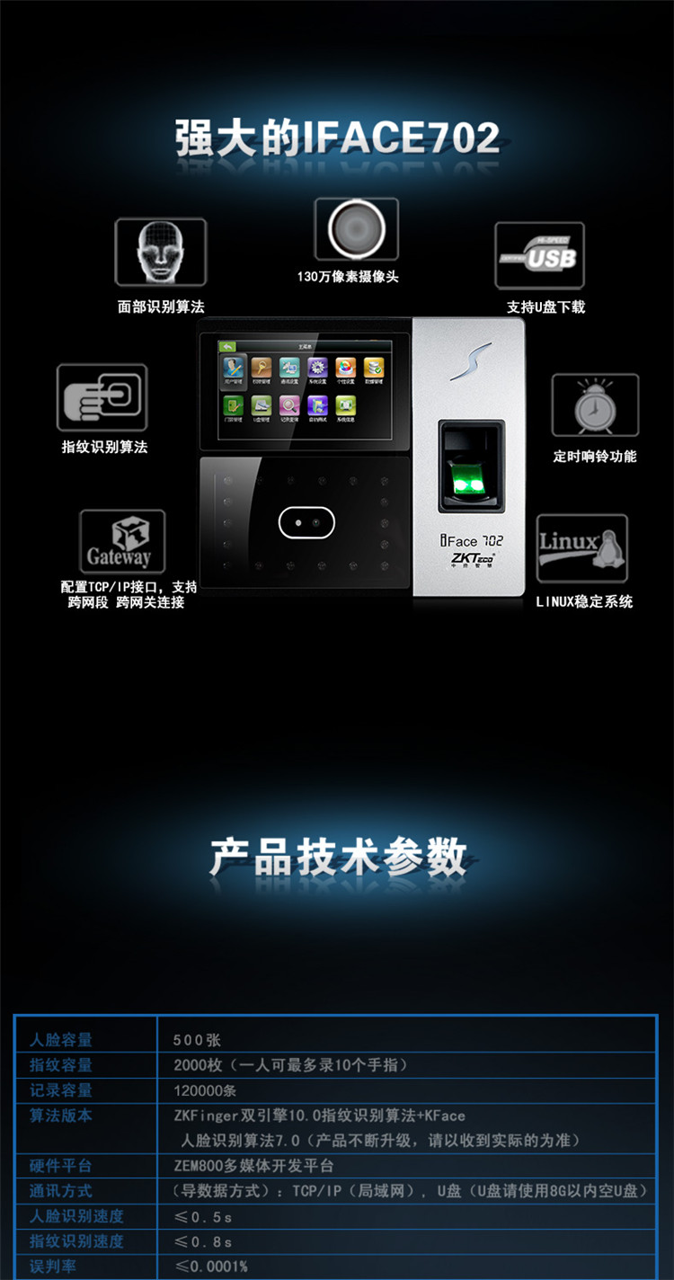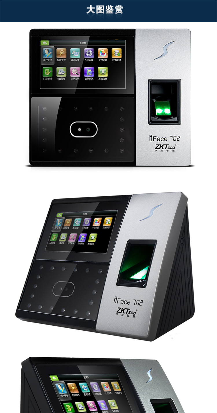 中控智慧IFace702人脸识别考勤机 指纹机 面部打卡机 门禁一体机
