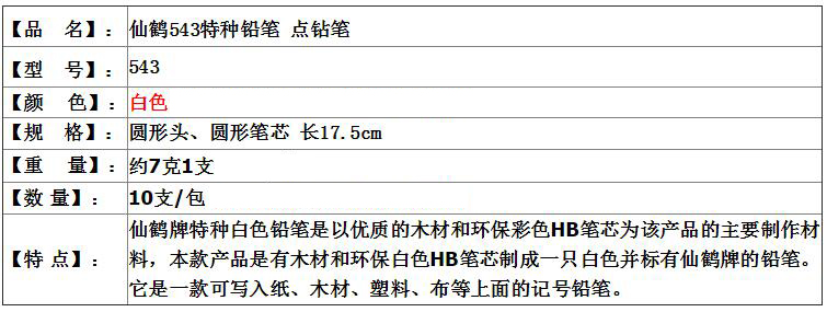 #仙鹤543铅笔 点钻笔 特白白 特种铅笔粘钻 白金笔裁剪笔 单支装 10支/盒