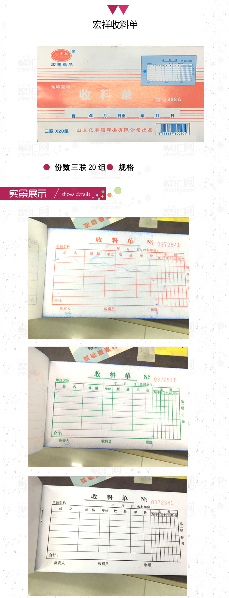 #宏翔三联收料单 单...