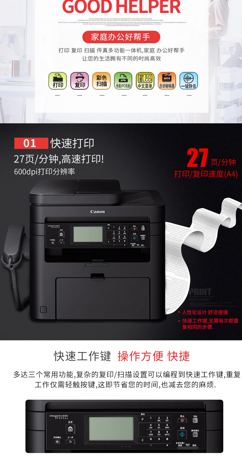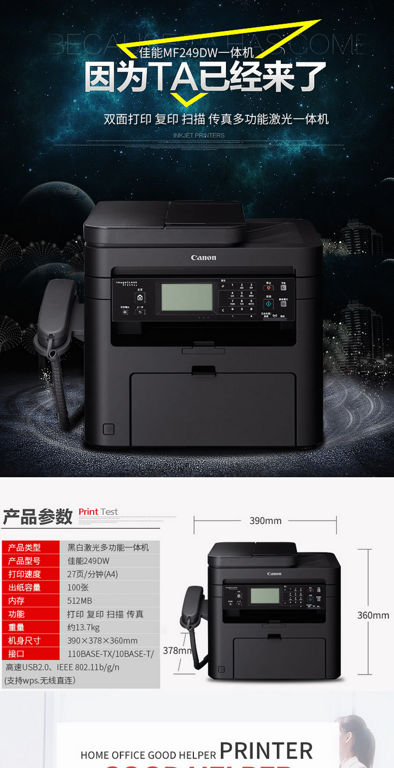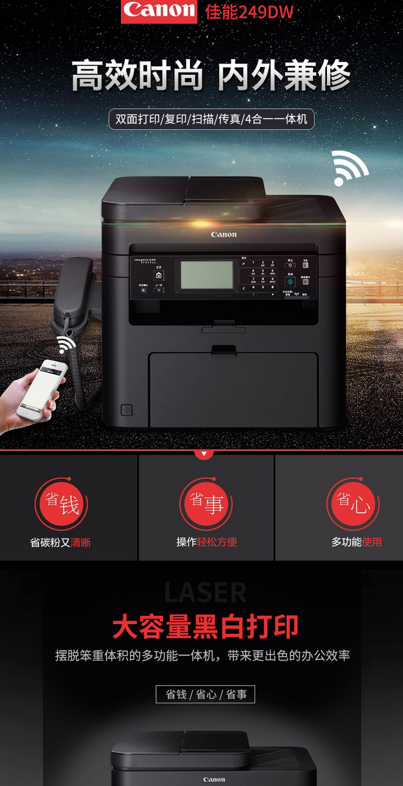 Canon/佳能 MF269DW 无线黑白激光一体机双面打印复印 扫描传真