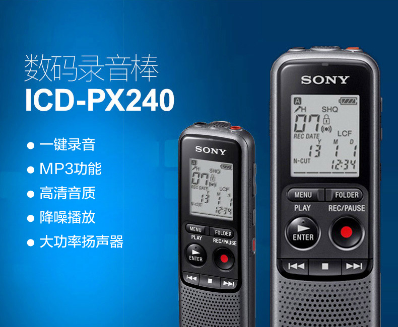 品牌: 索尼(SONY) 商品名称:索尼(SONY) ICD-PX240数码录音笔智能降噪 录音棒 专业学生会议录音器4G